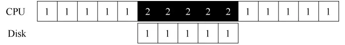 在这个例子中,在磁盘处理进程 1 的请求时,操作系统在 CPU 上运行进程 2。磁盘处理完成后,触发一个中断,然后操作系统唤醒进程 1 继续运行。这样,在这段时间,无论CPU 还是磁盘都可以有效地利用。