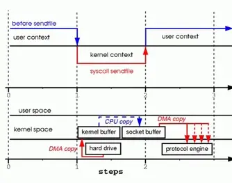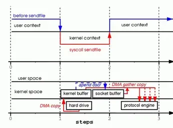 scatter-gather: on从 Linux 内核 2.4 版本开始起,对于支持网卡支持 SG-DMA 技术的情况下, sendfile() 系统调用的过程发生了点变化,具体过程如下: