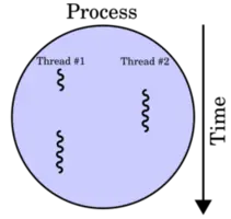 一个CPU核心同一时刻只能执行一个线程,一个有两个线程的进程在单核处理器上的执行顺序如下图: