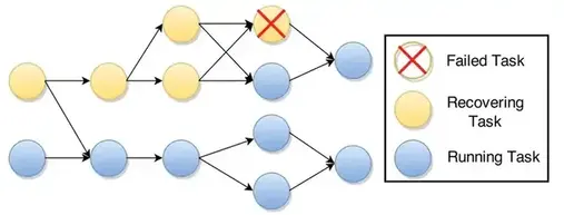 最简单的形式是,可以从最后一个全局快照重新启动整个执行图。例如每个task t: