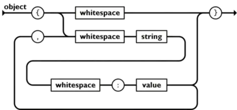 • object对象以 {开始,}结束,对象内是一组未排序的键值对的集合,键值对之间以逗号隔开,键是字符串,而值可以是任意的json值。键和值之间,键值对之间可以有任意的空白字符。