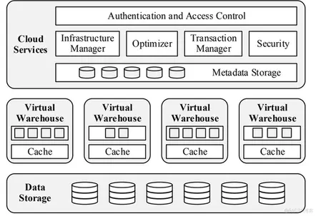 虚拟仓库是临时的、特定于用户的资源。相比,云服务层在很大程度上是多租户的。这一层的每个服务访问控制、查询优化器、事务管理器和其他服务都是长期存在的,并在许多用户之间共享。多租户提高了利用率并减少了管理开销,这比传统体系结构中每个用户都有一个完全私有的系统在体系结构上具有更好的规模经济。