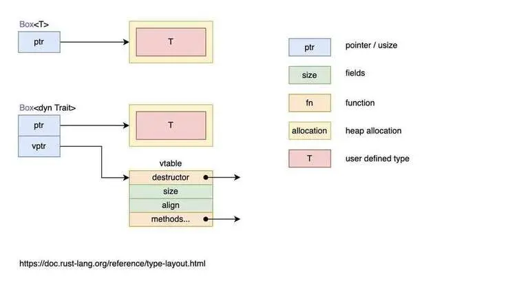 - 特征对象大小不固定:这是因为,对于特征 Draw,类型 Button 可以实现特征 Draw,类型 SelectBox 也可以实现特征 Draw,因此特征没有固定大小